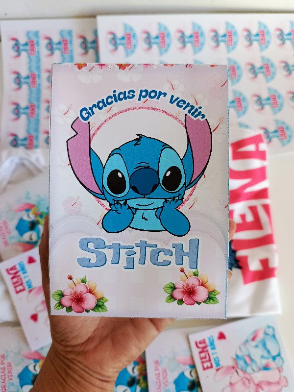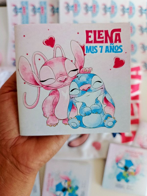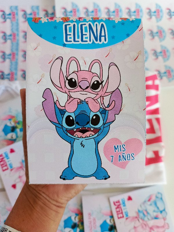 ¡Todo lo que necesitas para una celebración mágica y memorable! Este kit está diseñado con ilustraciones vibrantes de Stitch y Angel, y se personaliza con el nombre de tu cumpleañera, y su edad,